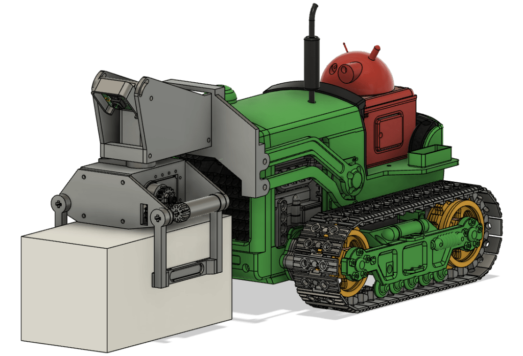 The idea is that the grip rotates to suit the orientation of the sheep, then the robot drives to the sheep (guided by camera and front ToF), the grip grabs the sheep, then the front loader lifts the whole lot. The robot can then drive to the pen, possibly rotating the sheep as it goes to help with sheep “packing” in the pen.