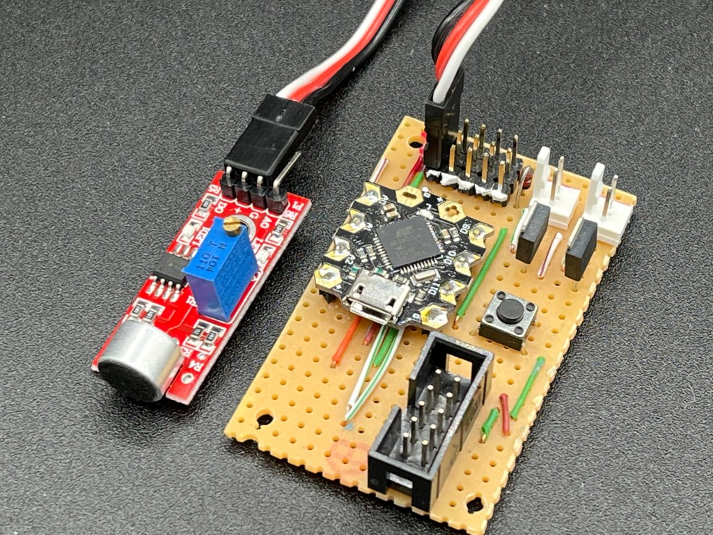 It turns out the last year’s feed the fish controller (on the right in the picture), combined with a little microphone preamp board (on the left) that someone bought for my birthday years ago, should work as a whistle detector!