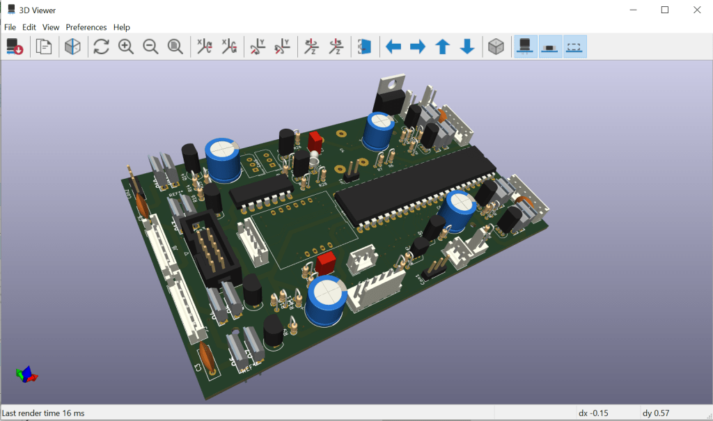 The board was developed in KiCAD. This is new to me, but I found it pretty easy to get the hang of. I found this video tutorial to be particularly useful.